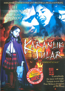 It sometimes seems that the colourful reputations garnered by Turkish popular cinema's action-packed superhero films (see Casus Kiran and Demir Pence Korsan Adam) will forever ensure that those films remain the most commonly discussed aspect of Turkey's cinematic heritage. However, Yavuz Yalinkilic's flawed but fascinating horror flick, Oluler Konusmaz Ki (1970), serves to prove that the impoverished Turkish film industry was capable of successfully engaging with other popular film genres. Recently paired with a contemporaneous thriller (Mehmet Aslan's Aska Susayanlar Seks ve Cinayet) on the Turkish Horror double bill DVD issued by Onar Films, Yalinkilic's eerie and atmospheric film concerns itself with a sentient and malevolent zombie-ghost creature that stalks the grounds and corridors of a gothic mansion-like hotel. The feature remains an interesting and inspired effort despite being severely hampered by a multitude of budget-related shortcomings. Twenty three years later, E. Kutlug Ataman wrote, produced and directed a film that would take Turkish cinema's engagement with the horror genre to a completely new and previously undreamed of level. Armed with a challengingly literate script and greatly aided by a decent-sized budget, Ataman was able to assemble an international cast and crew that featured a number of seasoned professionals amongst its ranks. Their wealth of experience and Ataman's determination to break new ground resulted in a really quite remarkable Turkish film being produced. Narrative-wise, Karanlik Sular is extremely bold in its use of surreal, elliptical and hallucinatory-like storytelling techniques but the show's seemingly endless parade of genuinely intriguing enigmas ensures that its central narrative thread remains compelling. At a technical level, the film has more in common with European art house productions than it does with the fun-but-underfinanced films produced during Turkish popular cinema's 1960s/1970s heyday. As such, it's not at all difficult to appreciate why Karanlik Sular is routinely cited as being the best Turkish horror film ever made.