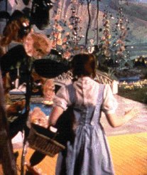 On the words "and who knows which is which and who is who", we see the Wicked Witch of the West looking at the dead feet of the Wicked Witch of the East.