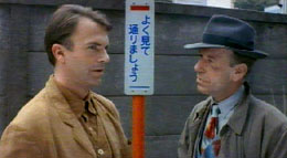 14) The regrouping of the principal players at the Outback air hangar is longer. When the cops do an ID check on Sam, 'bells ring' both with Krasikova's Bounty Bear program in Moscow and with bounty hunter Bert, thus verifying Winter's explanation for the Yakuza problem in Tokyo, and explaining Bert's arrival at the outback laboratory. Also longer is Sam and Claire's trek across the wasteland.