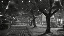 1. It's a Wonderful Life is unique in that it is a Film Blanc with a self-contained Film Noir episode. The horror vision of Bedford Falls turned into the degenerate Pottersville is like an alternate-universe in a time travel science fiction story. What Savant hasn't heard pointed out elsewhere is that this must have been Capra's statement against the violent, amoral 40s thrillers he so vociferously condemned in his autobiography, films like Kiss of Death where grandmothers in wheelchairs are pushed to their deaths down stairways. Kiss of Death and its ilk, of course, would eventually come to be known as Film Noir. Read more about Films Blanc in a related Savant article. Return