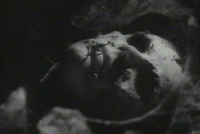 It is true that, in scenes where the witch is re-vivifying in the crypt with scorpions and other nasty bugs crawling on her face, there are a couple of cuts that may have been trimmed. But most of the scenes above would appear to be agreeably intact.(the mallet striking the mask was shortened, and a shot taken out completely of the Father's burning face. Also a very graphic shot, not mentioned in the Trevelyan or MPAA correspondence, of a wooden stake being driven through the dead Krubajan's eye!)
