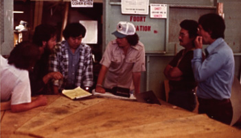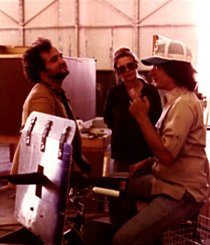 Physical effects were handled by veteran A.D. Flowers, who flew flying saucers for Forbidden Planet and blew up Hawaii in Tora Tora Tora!, and unsung effects whiz Logan Frazee, who had engineered countless brilliant gags like the trick knife used to slit Jack Nicholson's nose in Chinatown. Flowers had a steel nerve. The effects hangar was a frequent studio tour site, and A.D. became fed up with constant requests for pyrotechnic demonstrations that slowed preparations and depleted his department's supplies of miniature squibs. After days of exposion demos, flak demos, and machine gun demos, Spielberg brought George Lucas on a visit. A.D. suggested a demo of 'miniature fire'. This consisted of Flowers pouring out, then igniting, a gallon of rubber cement on the hangar floor. The fireball blazed twenty feet high, while A.D. stood by calmly. Watching A.D. for a cue, effects men slowly reached for extinguishers like cowboys inching their fingers toward their sixguns . . . Spielberg and Lucas were forced to pretend they weren't