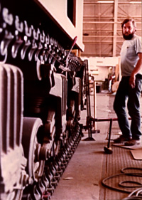 Pat Carman installs 'brand new' treads on his refurbished Lulubelle.
