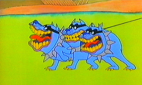 Hey Bulldog is not only one of the better new songs, its reinstatement smooths out the flow of Yellow Submarine. Like the rest of the 'fantabulous, psychedelic' feature, the footage is better seen than described. (Scoops hooray; Spoilers boo.) The scene deals with one of the four-headed dogs the Blue Meanie troops use like bloodhounds. Viewers with even casual memories of the earlier release will have no trouble spotting the new footage when it jumps out at them (and barks, too).