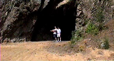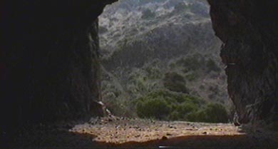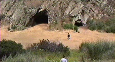 It's a short stroll through the dark but spacious tunnel. You are almost at the other end when you realize you are looking at a scene from The Searchers. It's the ending where John Wayne pursues niece Natalie Wood to the mouth of a cave, and instead of killing her, raises her into his arms. The opposite wall of the Quarry outside the cave is the hill down which Wayne rides his horse at top speed. Wood's stunt double falls into a cloud of dust, and Wood herself pops up to finish the shot at the cave entrance. Having been an early 70s film student, The Searchers was sort of a holy grail. The obsessive use of scenery in that film never seemed more anarchic, and 'auteurish', than when John Ford match-cut from an Indian camp on a vast prairie, to the completely unrelated topography of this cave. We all assumed it was the Ford plan, to deconstruct 'The West' by jarring the continuity, just as he melted down realism by making every setting from Mexico to Canada somehow be Monument Valley. After seeing Bronson Canyon, it's obvious that the real reason the end of The Searchers was so location-schizo is because Ms. Wood was too expensive to take to Monument Valley for more than a day or two!