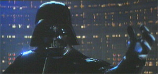 Looking at Star Wars, what do we find? Darth Vader has gloved hands, one or both of which might be robotic in origin. He hacks off Luke's right hand, necessitating the grafting (a la Mad Love or The Hands of Orlac) of a robotic replacement. In Germanic Expressionistic Serial terms (and Star Wars is at base this kind of serial) this can only mean one thing: Mutilation = character flaw. The mutilation should mark the beginning of a BLACK period in Luke's life. Savant was therefore disappointed when Luke returned in Jedi wearing black but having changed only by becoming (unaccountably) a full-fledged Jedi master. His false hand plays no further part. The mutilation comes full circle when Luke lops off Pop's hand, a hollow gesture that adds nothing, unless the message is that solving one's identity problems is as easy as hitting Dad.