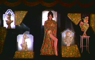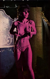So what's missing? In this case the answer is simple: Prentiss apparently does something that takes at least a few bars of 'My Little Red Book' to do. Since the Jump Cut is there, Savant assumes it must involve something censorable, probably nudity. This doesn't mean there is a whole striptease scene there but it's a conclusion hard to discount. With the change of clothing, it looks as if Paula also retired backstage, with or without O'Toole at least long enough to change. Readers of Playboy got to see stills from the sequence and probably felt burned when the footage was snipped. In it Prentiss, clearly in the same scene, is indeed topless and showing all. Were these photos taken of a real scene, or just snaps of Prentiss performing for the Playboy photographer?