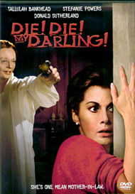 Die! Die! My Darling! was originally noted mostly for its camp value, with gnarly, acid-tongued Tallulah Bankhead earning her salary by out-doing Bette Davis' insane harpy act. Angry, abusive females are at the core of Richard Matheson's story, in which religious mania sends an already eccentric household into a mad tailspin. It's as Gothic as a contemporary story can be; Mrs. Trefoile rules with the Bible and an unspoken threat held over Vaughan's caretaker and his wife, the maid and cook. This part of the story barely holds together unless one accepts Trefoile's retainers as being almost as nutty as she is - Harry and Anna have nothing to gain from imprisoning Pat Carroll, which could easily bring both of them 30 or 40 years in prison. Able actress Stephanie Powers does well with a role that predates feminist assertiveness. Motivated at first by courtesy, she defers to Trefoile's ideological tyranny without realizing the depth of the woman's menace. One of Trefoile's first remarks is that Pat shouldn't be going around the country unescorted, which in this case is good advice. Pat is open-minded and fair but not up to the task of defending herself, escaping or winning the help of the Trefoile servants. The strong-willed Anna has no trouble subduing her and the sex-crazed Harry sees through her attempt to deceive him. Pat never searches the cluttered rooms she's locked in for possible weapons. For that matter, she makes no real defensive moves at all. Modern audiences used to seeing two-fisted heroines strut their super-woman stuff in action movies won't have much patience with the unconfrontational Pat, who continues to plead verbally when the nature of her foe is clear, and hasn't the brains to feign cooperation while formulating a good escape plan. At one point she's forced to write a note to her boyfriend, which gives her the opportunity to send him any number of hints - spelling his name wrong, using a wrong handwriting style, anything. Writer Matheson made Pat Carroll a woman of the 60s, not one of today's equal-opportunity killers. Her responses are reasonable and measured; it's just that she can't comprehend the depth of a fanatic like Mrs. Trefoile. Matheson gets in some good digs against religious intolerance and the priggish way some prudes and conservatives see the need to impose their values on others. And his device of having Mrs. Trefoile worship her son's portrait while preparing a bride for him in the afterlife, has a Gothic clarity that works well up until the final theatrics. Matheson injects a little humor into the proceedings, but most of his story is straight-arrow serious. (spoiler)The main conflict is really female sex. Trefoile was once a fallen woman of the stage and now seeks to punish transgression wherever she detects it; Pat Carroll openly admits to being unmarried and not a virgin, and not ashamed of it. It's a nice bit of post- Doris Day attitude. If this story were made a few years later, it would be ironic when Pat leaps back into her boyfriend's protective arms at the conclusion. The experience hasn't given her any ideas that marriage to Alan might be a kinder version of Mrs. Trefoile's imprisonment. Die! Die! My Darling! has the kind of basic suspense mechanics that don't work well the second time through. Pat tries another feeble escape, and we're given basic tension gags - will the villains see her through the window? - that even in 1965 were rather predictable. Silvio Narizzano's direction is very good for character. The violence is also convincing, especially Pat and Anna's struggle over a pair of scissors that results in a graphically traumatic wound. A couple of setups, though, seem to be plagiarized from Hitchcock - Pat's trembling hand reaching out for help copies a moment in Psycho's shower scene, and there's also a frightening encounter in a basement with a knife-wielding old lady and a swinging light fixture. (minor spoiler)Once again the spectacle of seeing a vintage star make herself look and act hideously is the major draw. Bankhead stares, glowers, frowns, snarls and practically froths at the mouth, but she doesn't lose control once. Stephanie Powers looks very young and handles with ease both the comic eyerolling ("What did I do?"), and the later emotional ordeal. Peter Vaughan (Straw Dogs) is effective as a conniving lecher. Bruiser Yootha Joyce has the looks of a tougher Jessica Tandy and performs some painful-looking armlocks on our heroine. But making a great first impression is Donald Sutherland as Joseph, a mentally-impaired groundskeeper who answers Pat's pleas with laughter and uncontrolled drooling. That Joseph does not come to the rescue in the end, like Boo Radley in To Kill a Mockingbird, is to the screenplay's credit. (big spoiler)The only regret for the ending is that poor Anna, established as another victim of matriarchal tyranny, is obviously going to take the rap for all the goings-on at Trefoile manor, even the murder of her employer. Anna is a villain but not a voluntary one and I doubt that Pat's testimony is going to portray her as anything but a monster. Columbia Tristar's DVD of Die! Die! My Darling! looks and sounds fine. There is some white speckling here and there but the color is very good; the overall production values on this show are far superior to Hammer's constricted period Gothics made at the same time. The cat-and-mouse opening credits properly prepare us for a tense ride. There are no extras.